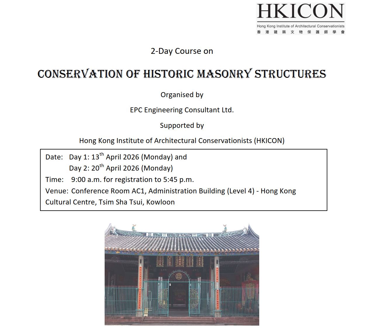 - For all enquiries about this course, please contact Ir Eric PW Chan, EPC Engineering Consultant Ltd. by Tel/WhatsApp 6176 3658 (Email: epcericchan@gmail.com).